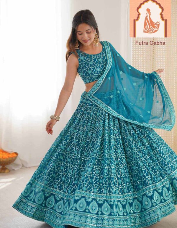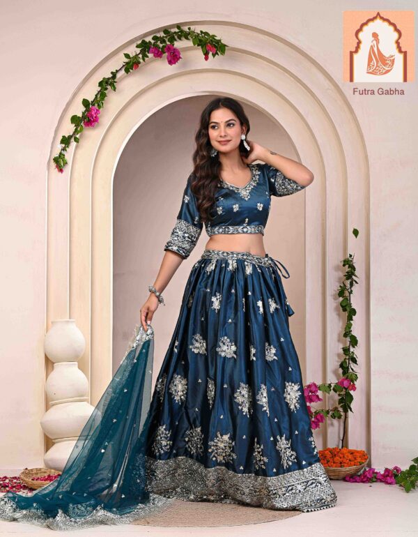 Luxurious Deep Teal Lehenga with Intricate Silver Thread & Sequin Work