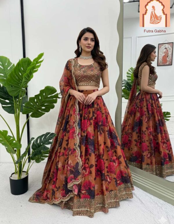 Floral Printed Organza Lehenga Choli For Party And Office Function Wear