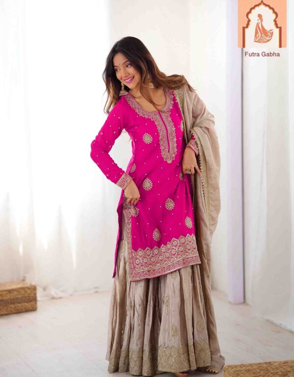 Pink Chinon Silk Top with Sharara & Dupatta