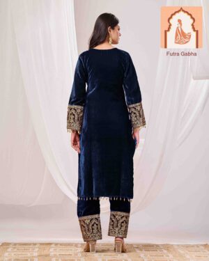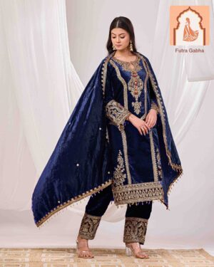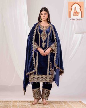 SKU: KK-T004 Categories: Suit Sets, Velvet suit set Tags: blue suits, Formal Wear, Indian suits, velvet dupatt, Velvet suits, women's suits