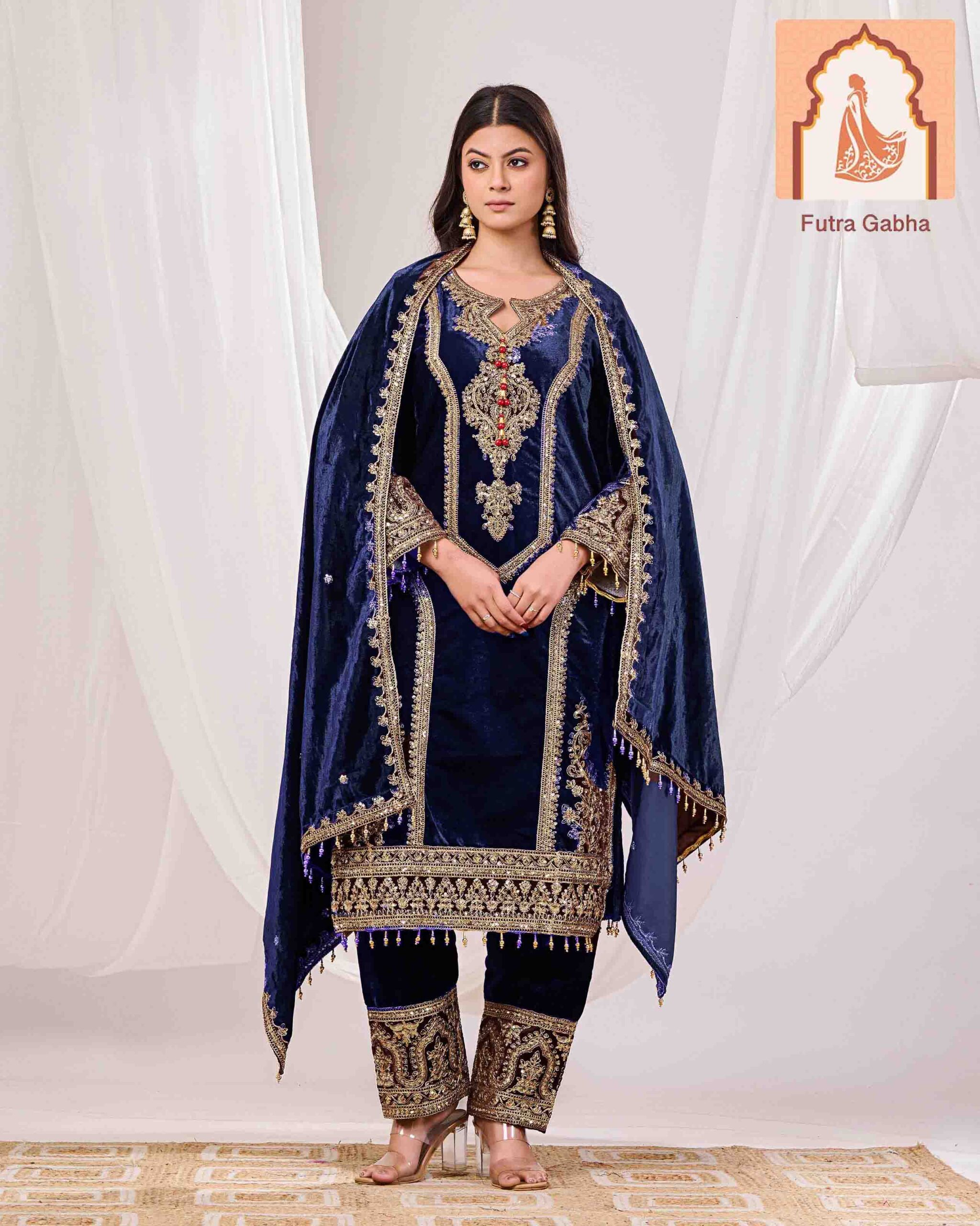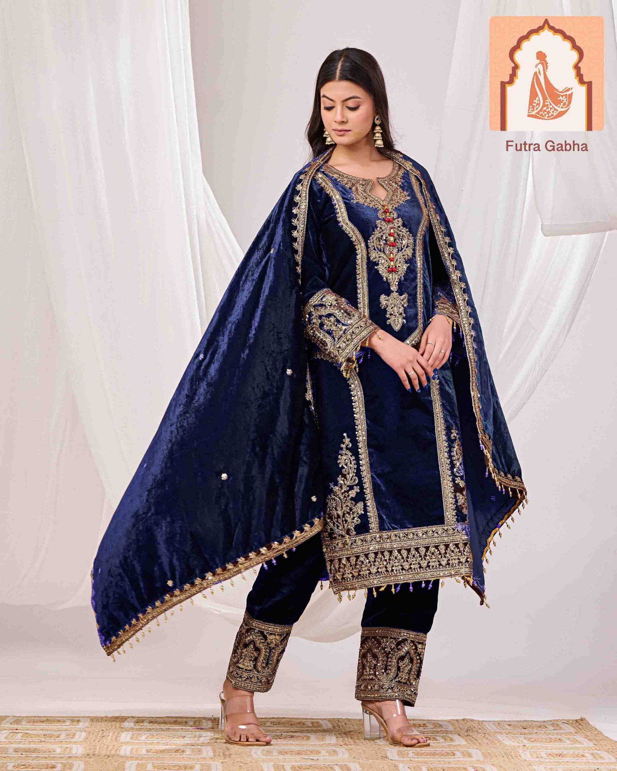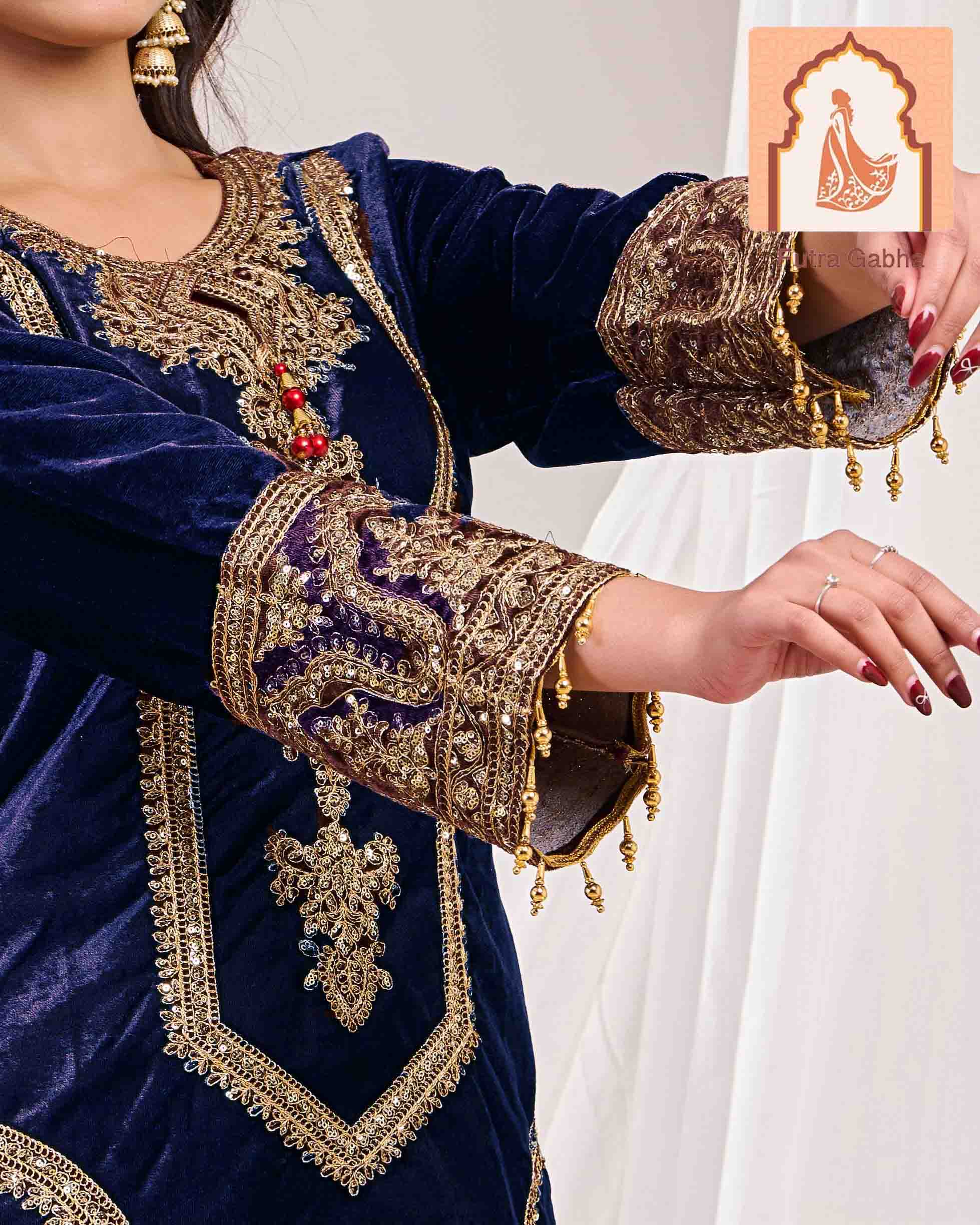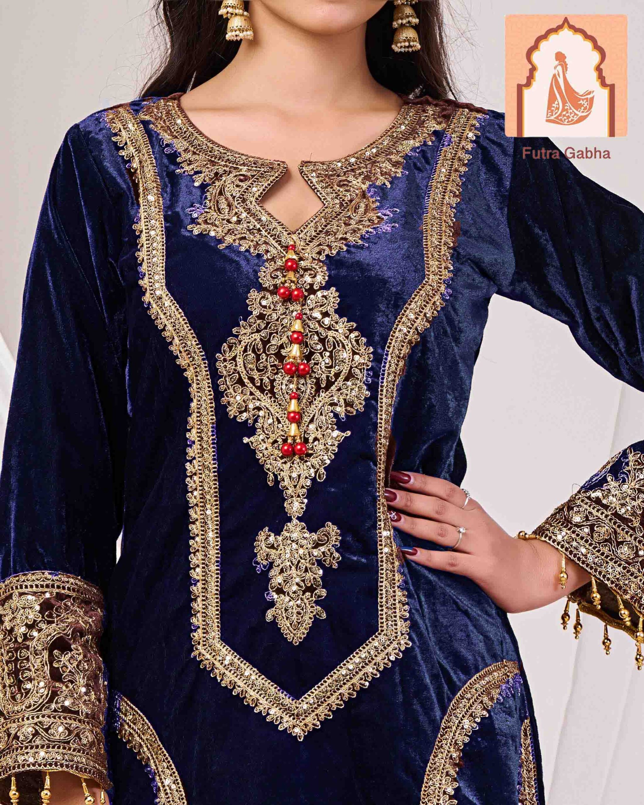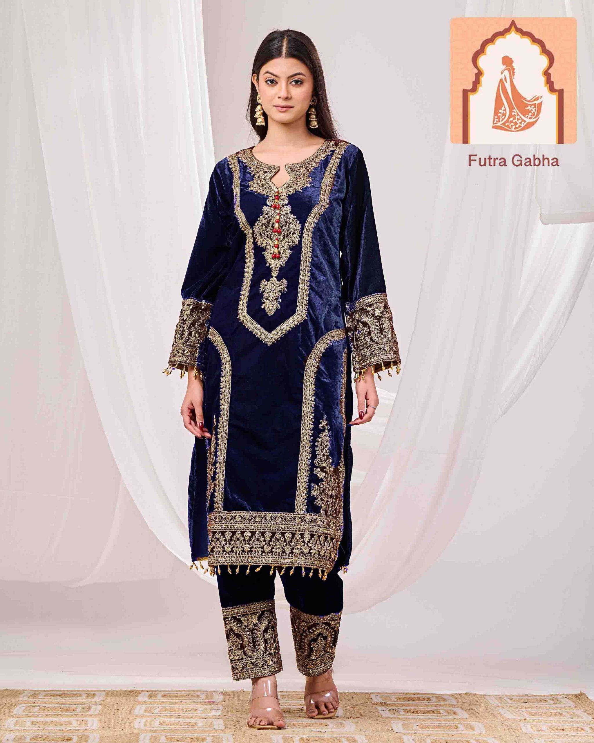 Elevate your festive wardrobe with this regal three-piece ensemble from Futra Gabha. Crafted from premium, high-sheen velvet, this suit is designed to make a statement at winter weddings, evening galas, and high-profile celebrations.
