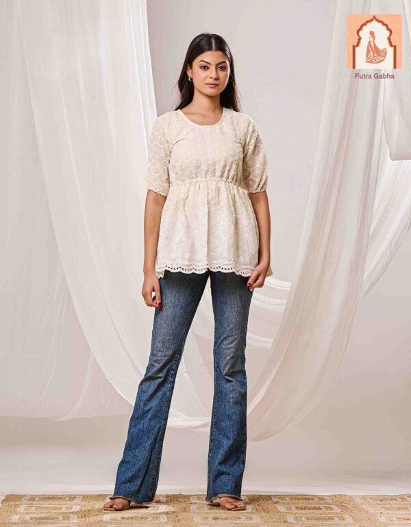 – Boot cut Pent: Georgette fabric, comfortable micro lining, fully stitched with elastic waistband, fits up to size 44.