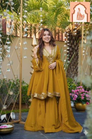 SKU: LG-2027-Mustard Categories: Anarkali set, Sharara set Tags: Designer Kurti, Ethnic wear, Festive Yellow, Gotta Patti, Haldi Dress, Long Sharara, Mehendi Outfit, Mirror Work Dress, Mustard Sharara, Peplum Kurti, Rayon Fabric, Ready to Wear, Short Anarkali, Traditional Style, Wedding Guest