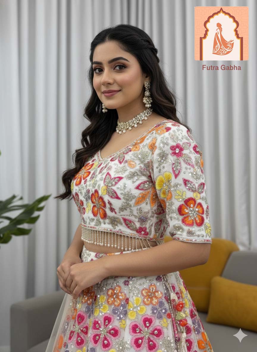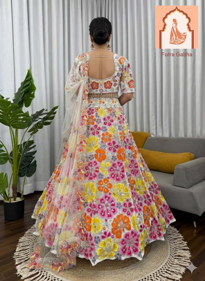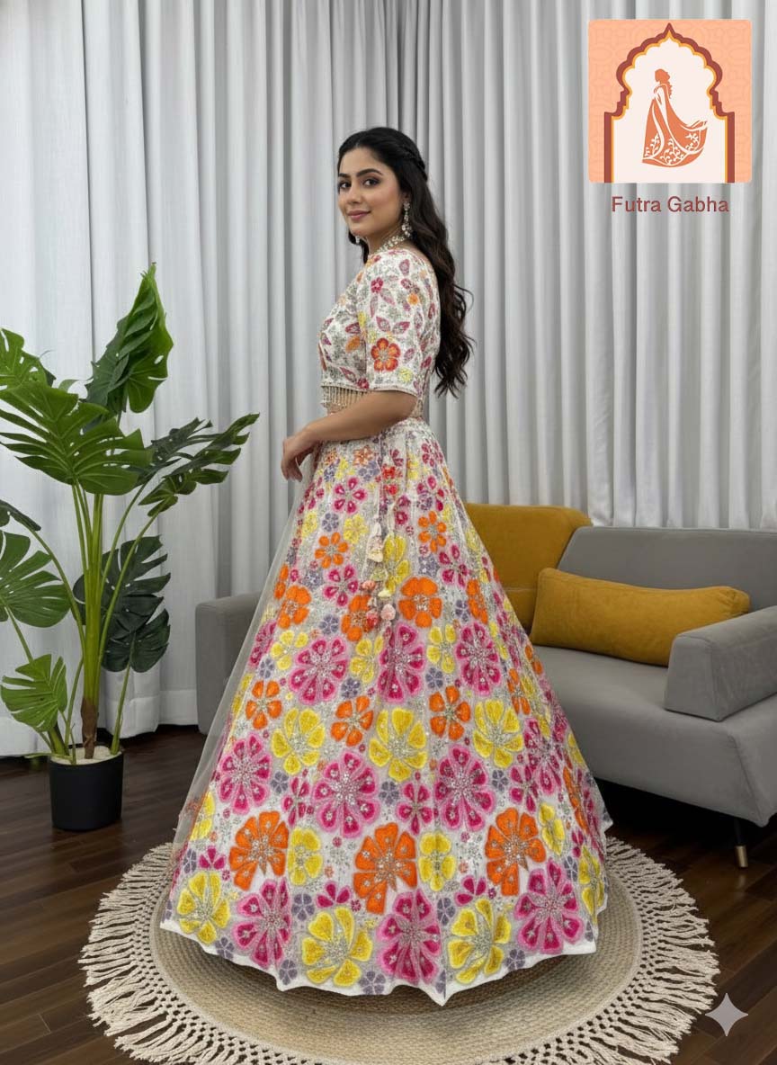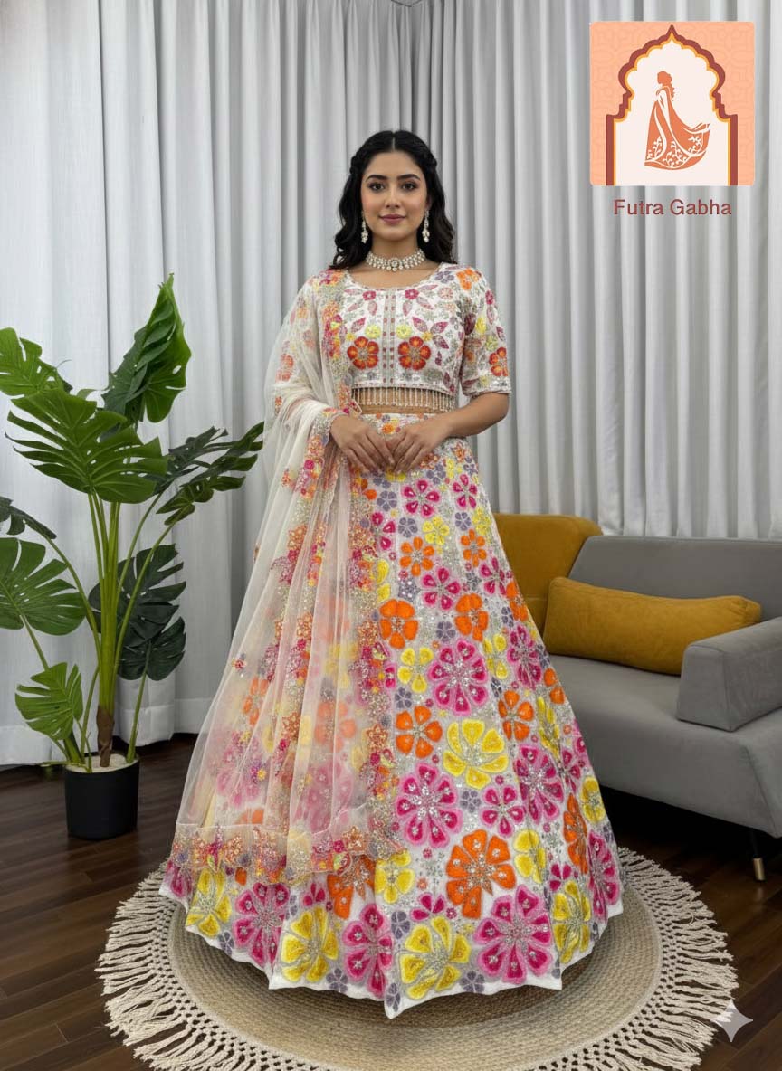 Heavy Boutique White Floral Georgette Lehenga Choli