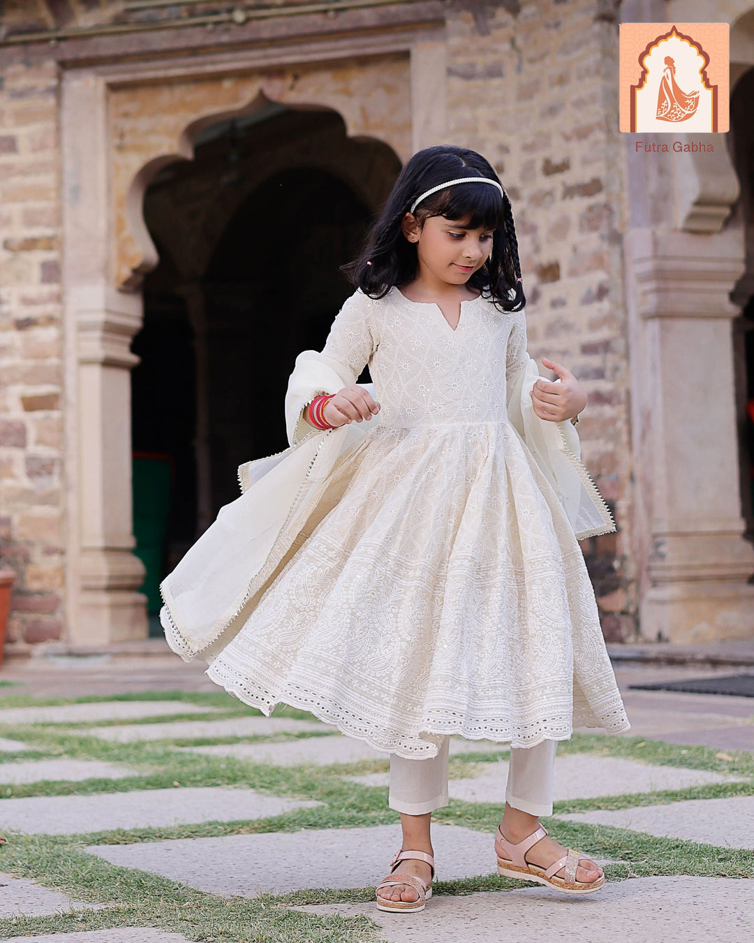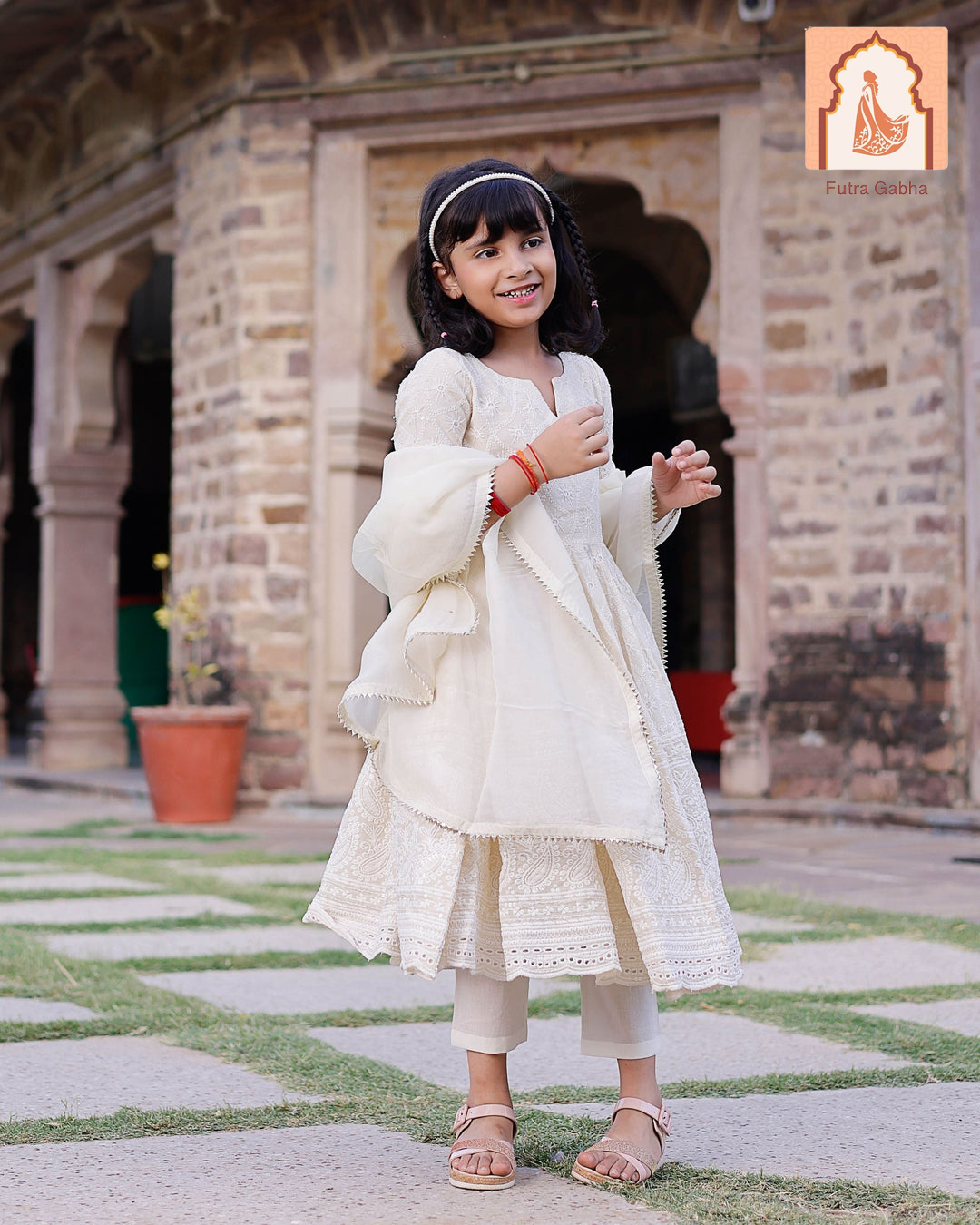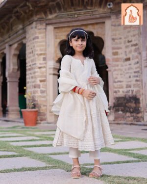 An ensemble inspired from our bestseller for women, we bring Molly Embroidered Cotton Suit Set for your little girl to shine through every family function and festivity with dove-like grace & beauty