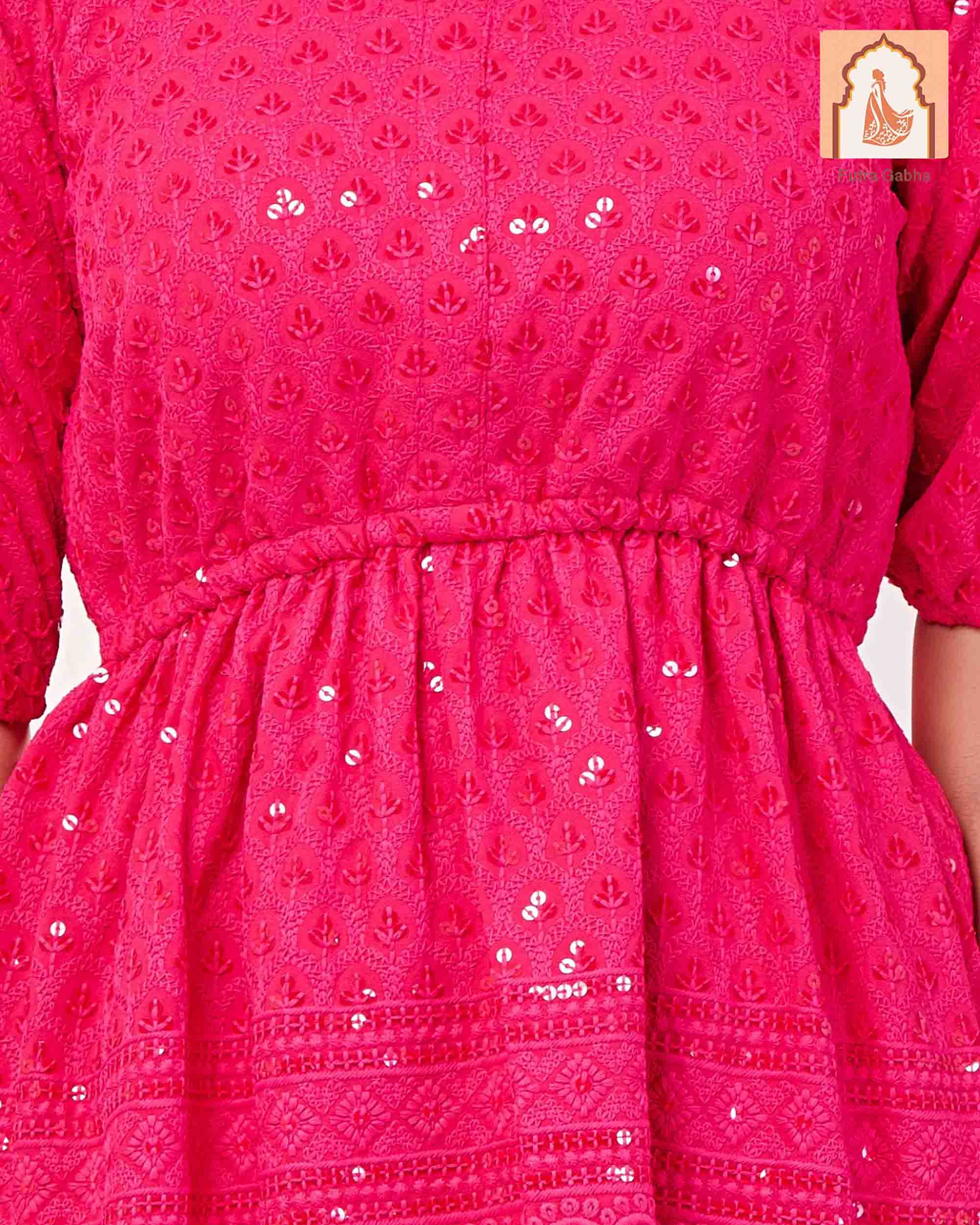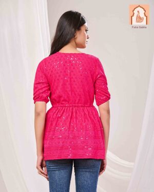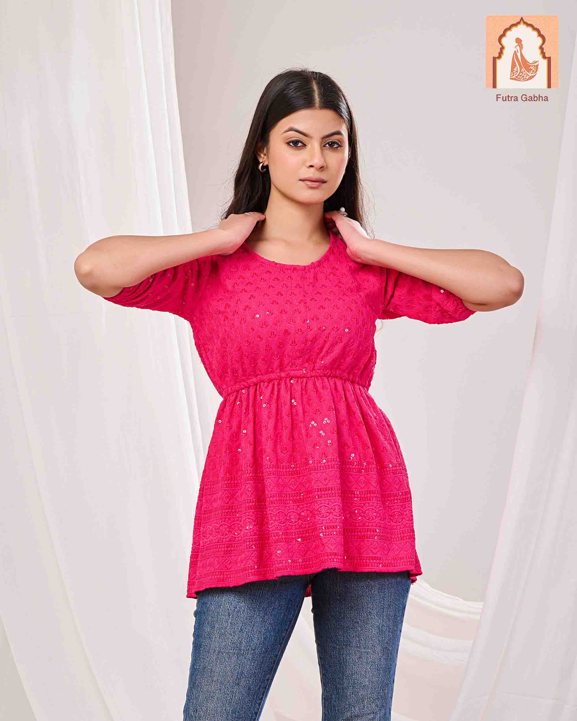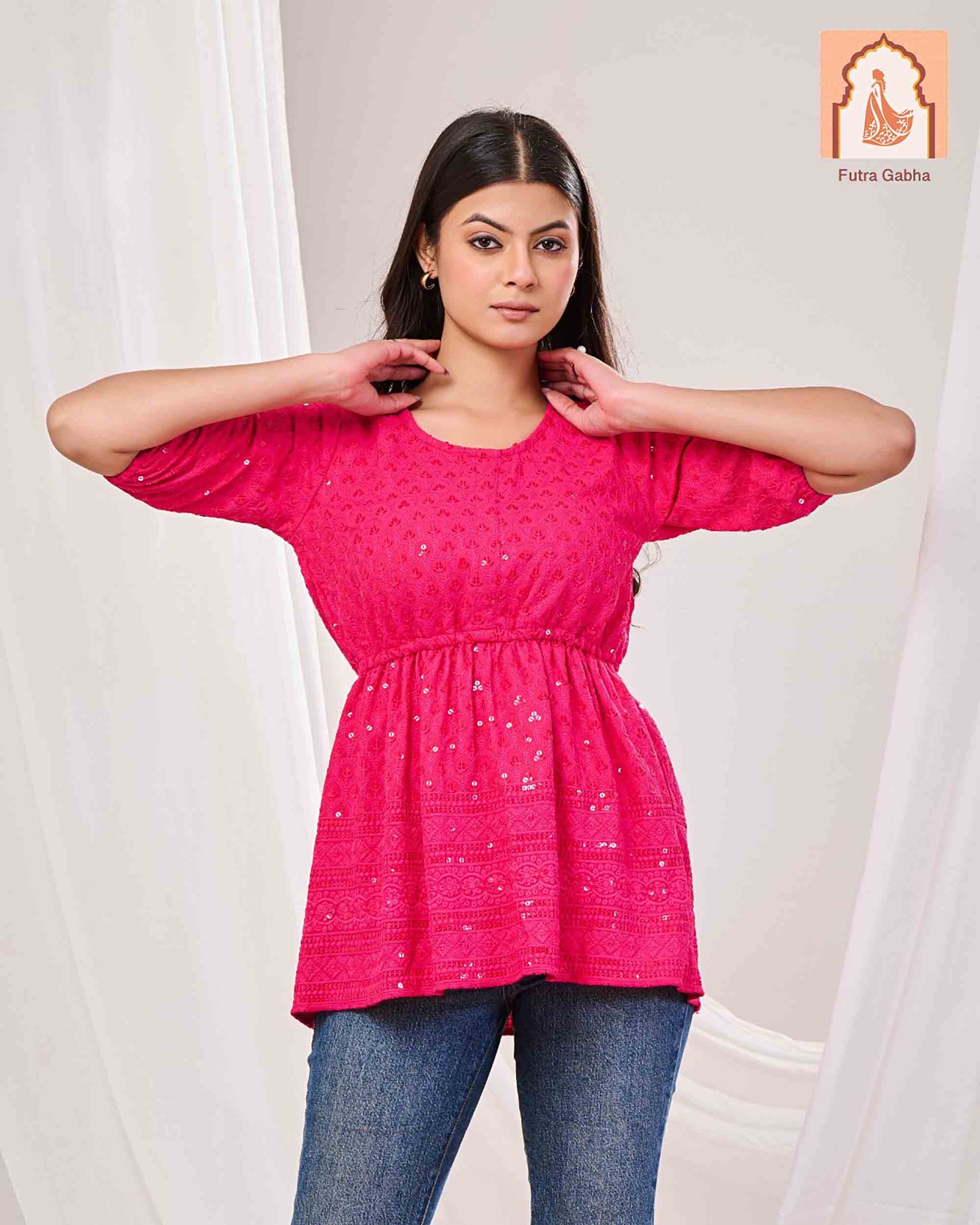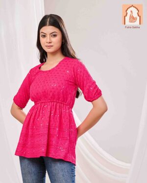 The item shown in the image is a pink women’s top, also referred to as a kurti or empire top, from the brand Futra Gabha.