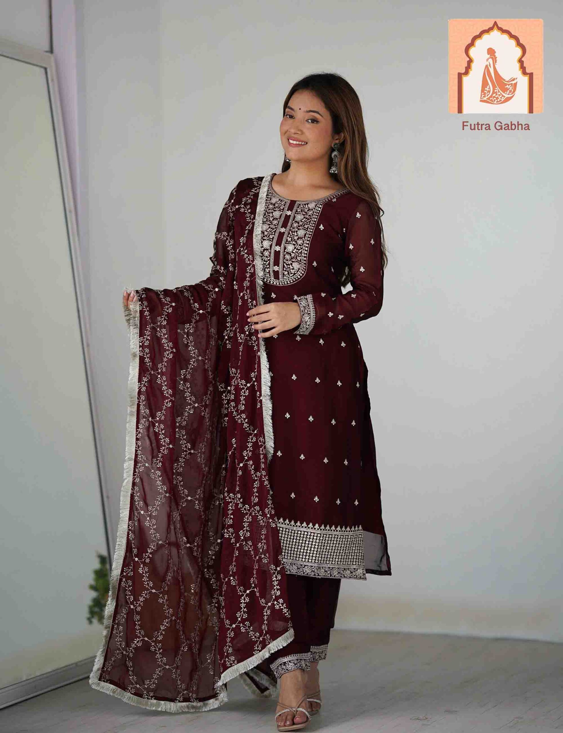 Tags: Color: Maroon, Embroidery Sequence Work, Fabric: Rangoli Silk, Round Neck, Thread Work