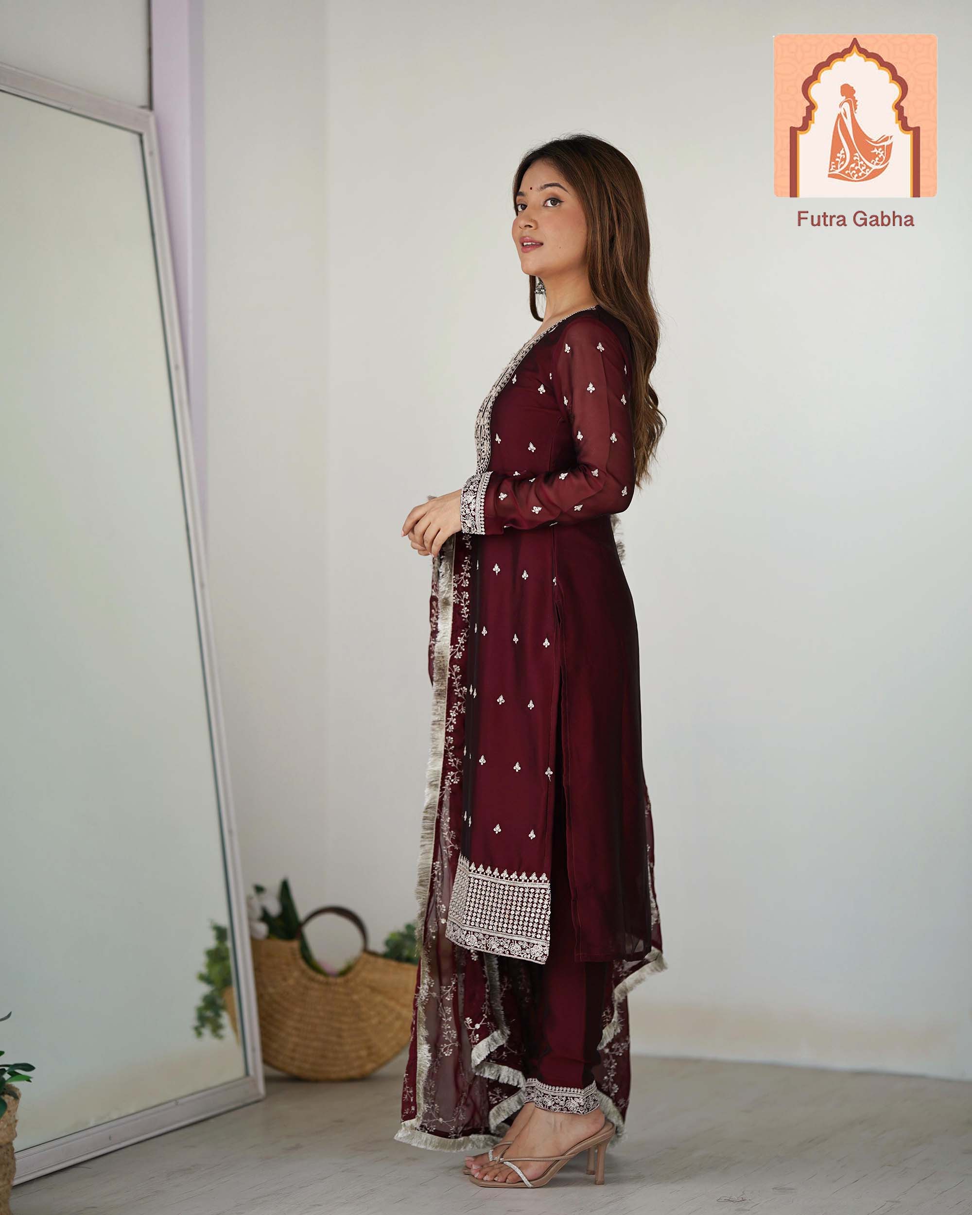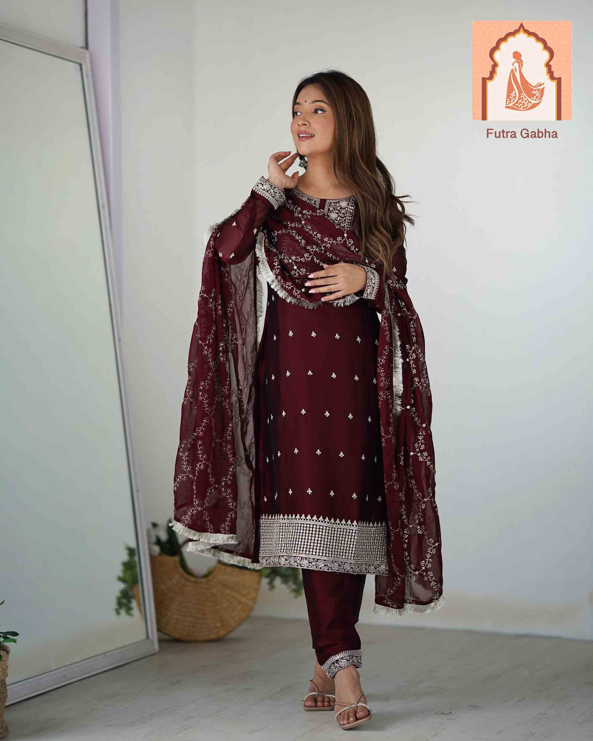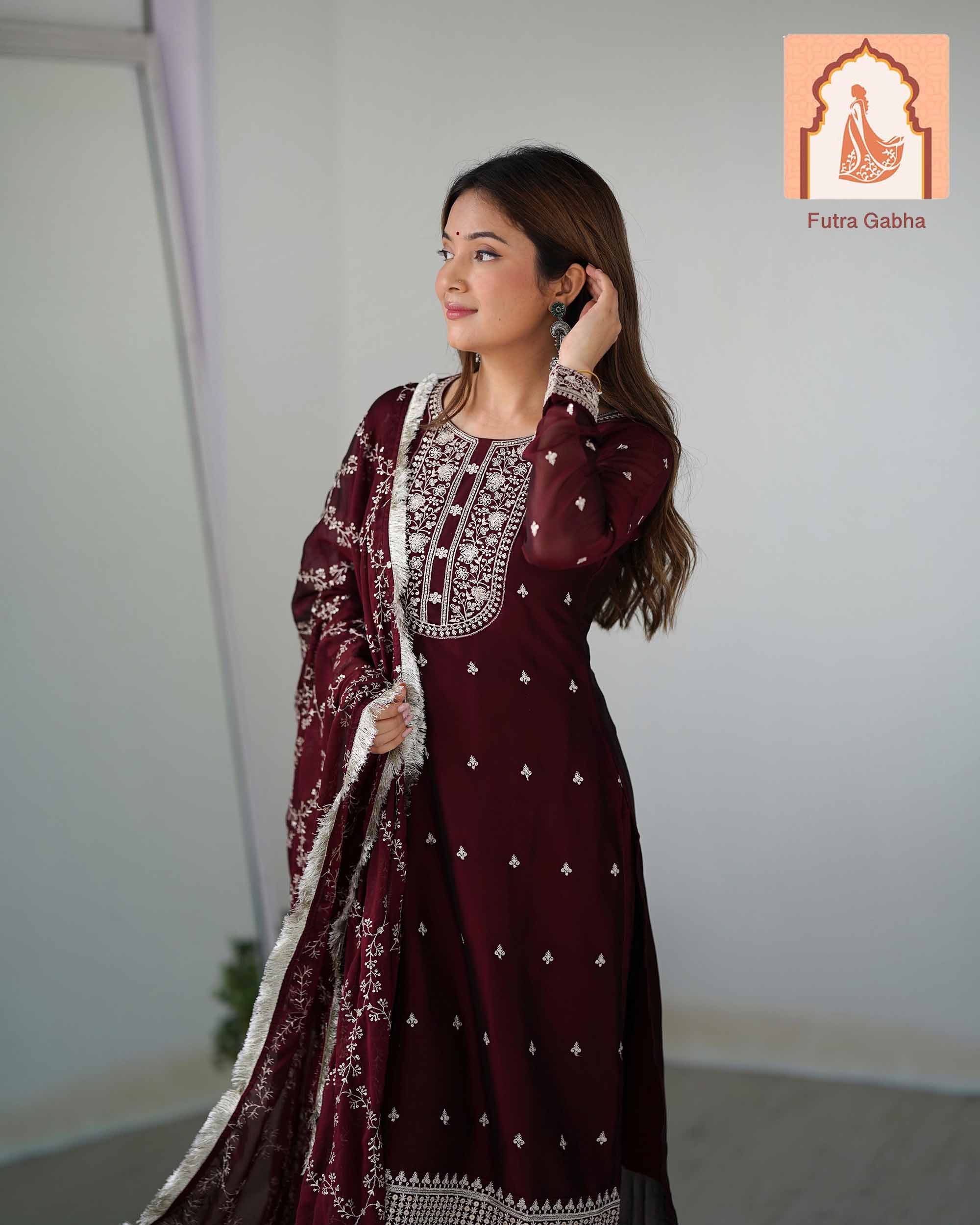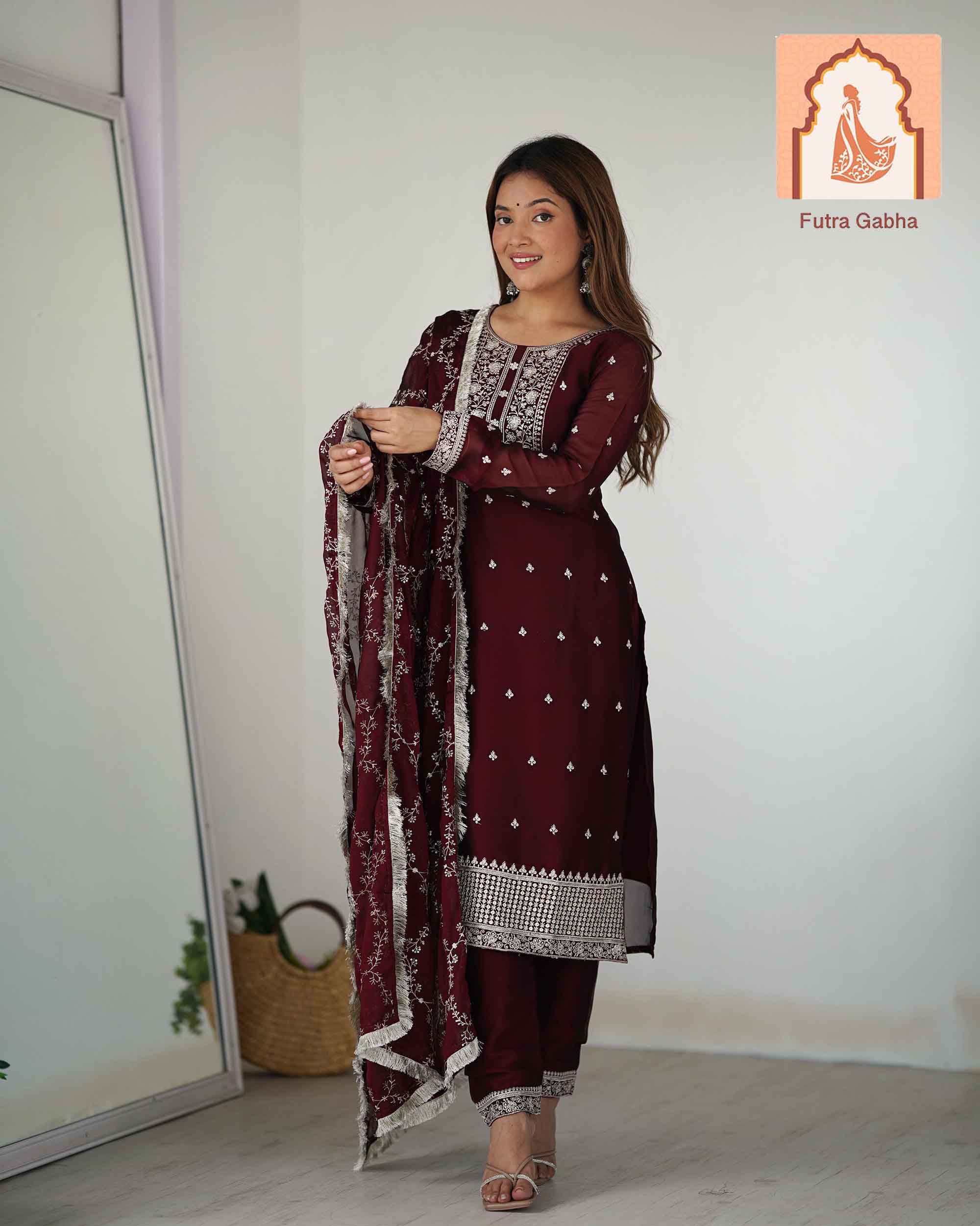 Premium Maroon Pure Blooming Rangoli Silk Kurta Set