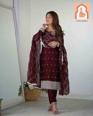 Be the first to review “Premium Maroon Pure Blooming Rangoli Silk Kurta Set” Cancel reply