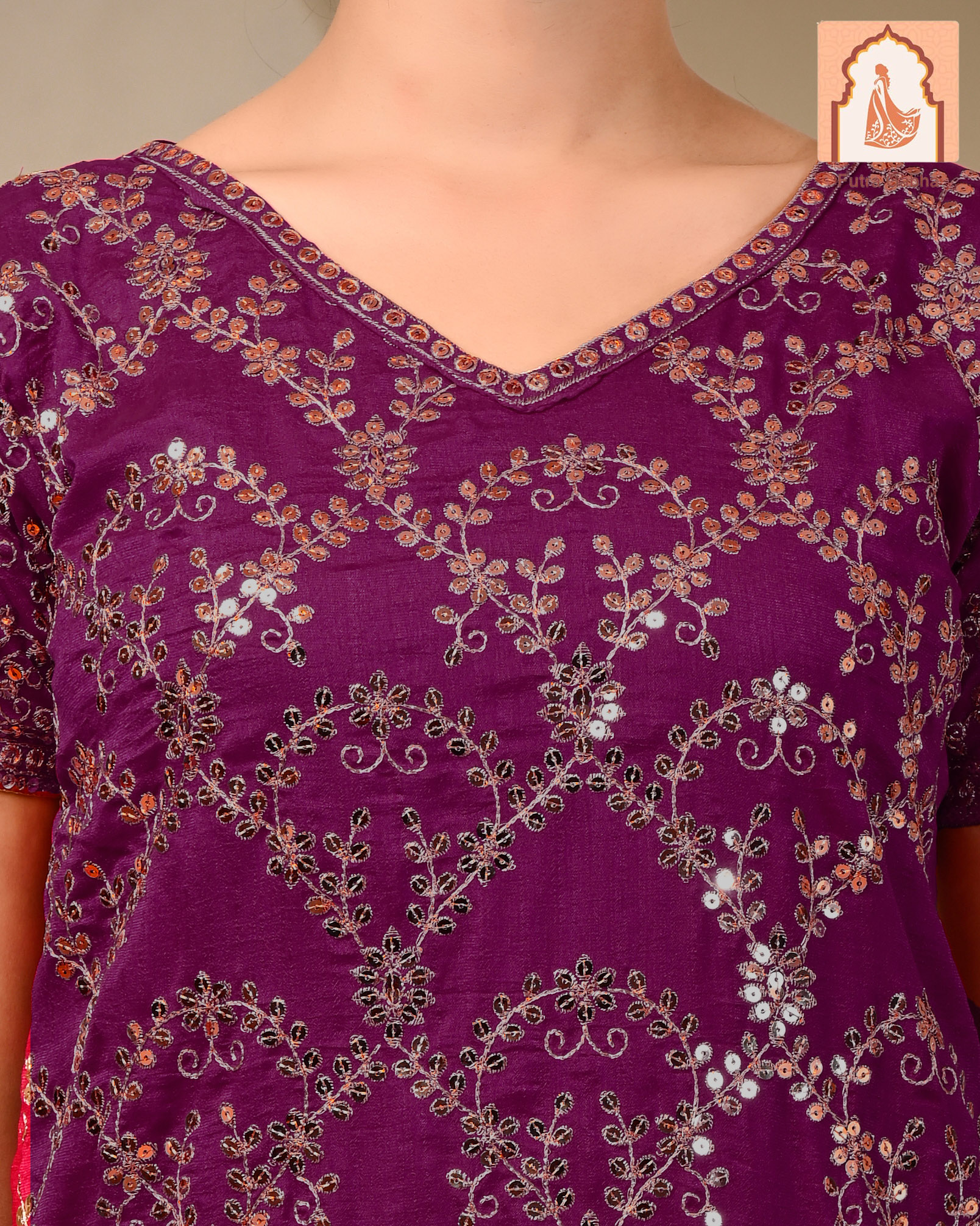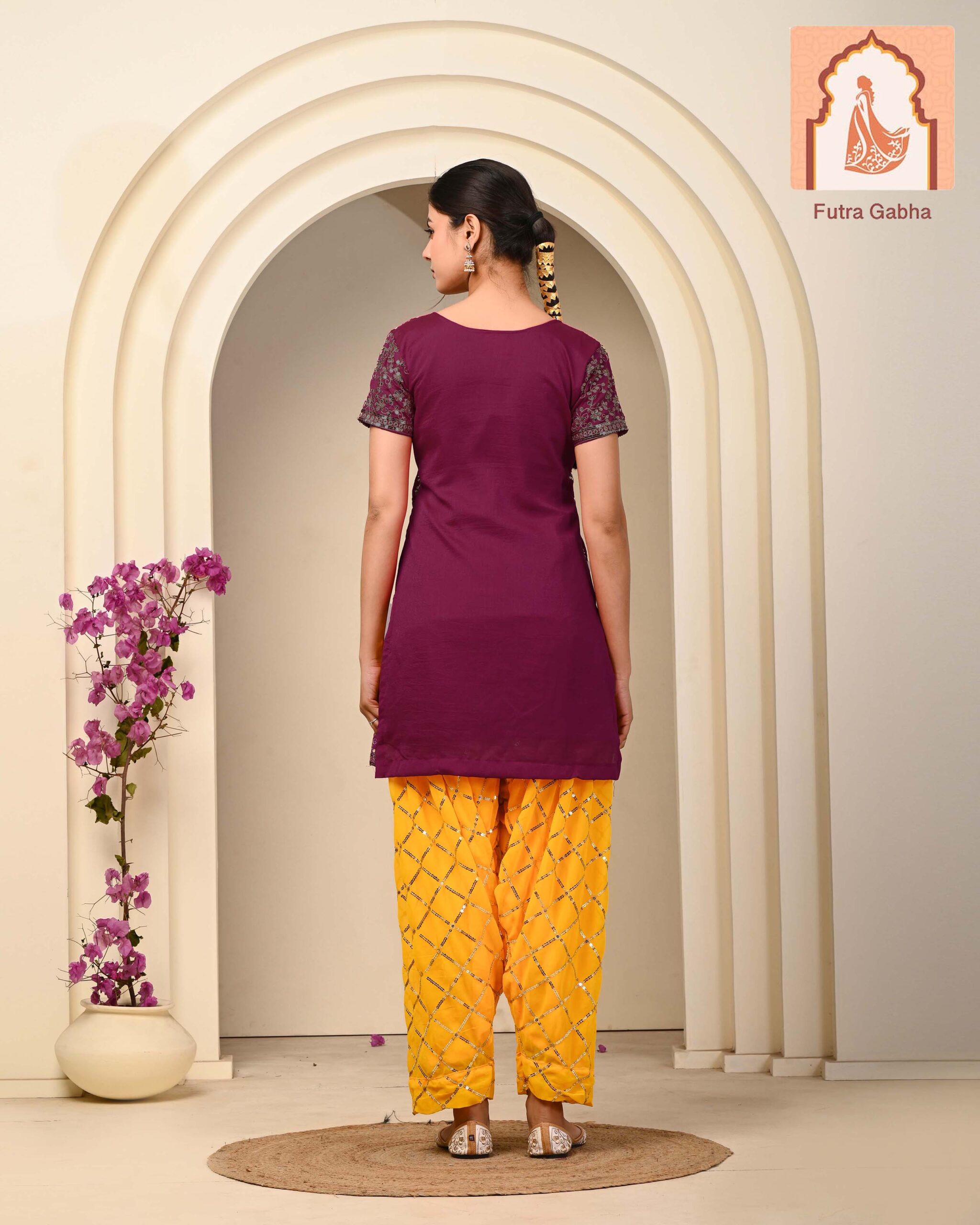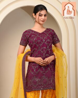 – **Dimensions**: The top and plazzo both measure 40 inches in length, providing a flattering fit for various body types. This uniform length allows for versatile styling options, making it suitable for both formal and festive occasions.