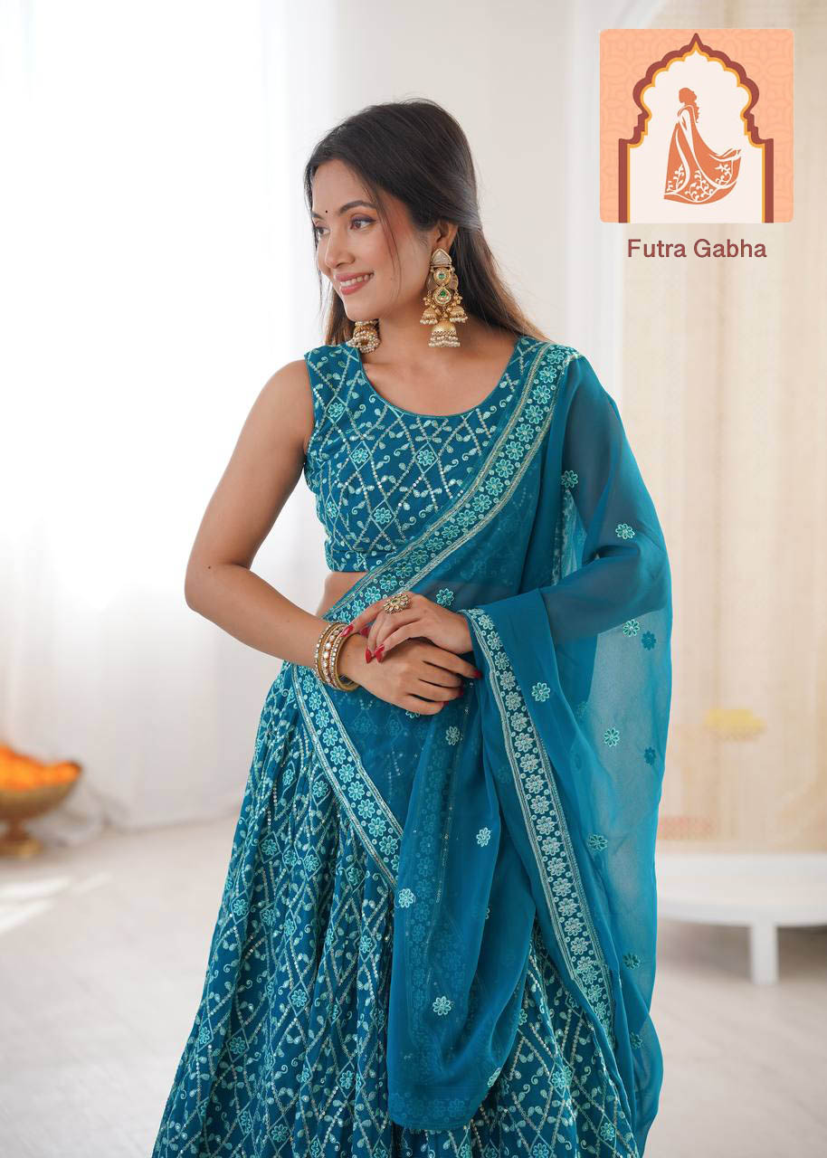 Teal Premium Georgette Stitched Choli Set with Sequins & Embroidery*