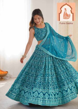 Tags: #Bridesmaid Inspiration, #Sequin Lehenga, #Traditional Elegance, Georgette Lehenga, Indian Couture, party wear lehenga, Teal Lehenga, wedding wear