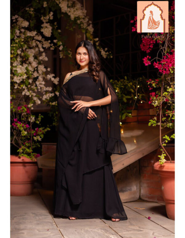 Black Georgette Sharara Set – Festive Wear with Embellishments