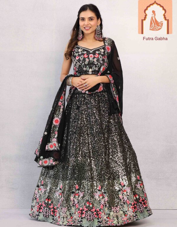 Black and Silver Sequin Embroidered Lehenga Choli with Dupatta,designer lehenga choli